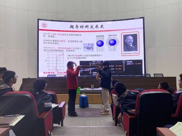 12月5日,麻豆视 副院长胡子阳率师生团队前往浙江工业大学附属德清高级中学,开展了一场别开生面的科普送课活动。此次活动以“超导磁悬浮探秘之旅”为主线,通过实验演示、互动体验与座谈研讨,为高中学生带来沉浸式科学体验,也为两校共建人才培育机制打开了新的合作空间。